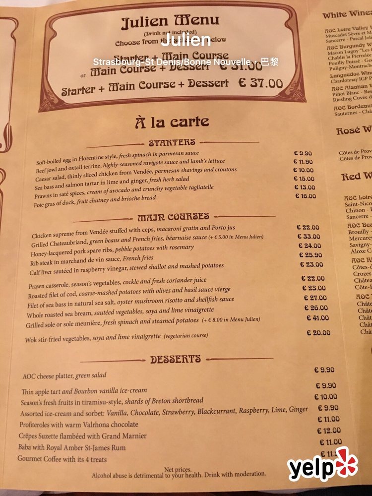 With affordability in mind, Bouillon Julien stays true to its mission of serving delicious meals without breaking the bank. Enjoy your meal alongside a selection of beers and wines while soaking in the charming, bustling atmosphere—perfect for families and groups alike!